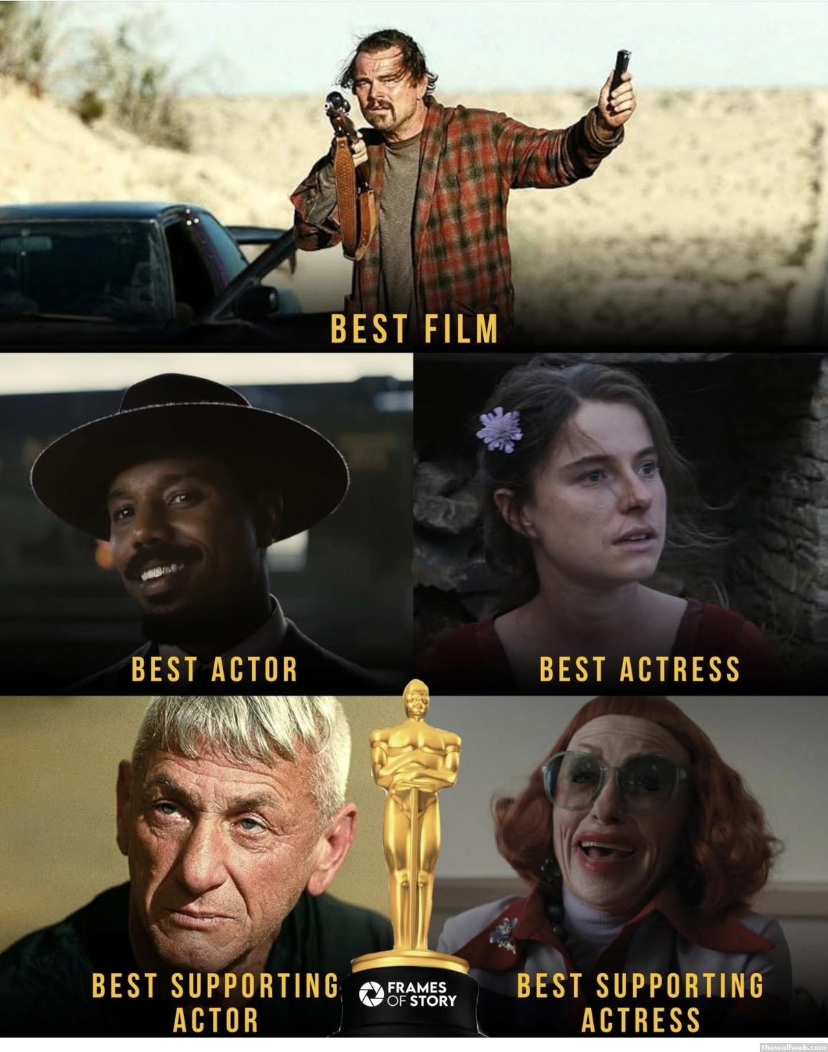 Everything predicted pretty much happened. Jordan best actor, penn best supporting, madigan best supporting, hamnet lady best actress, one battle after anothe best pic