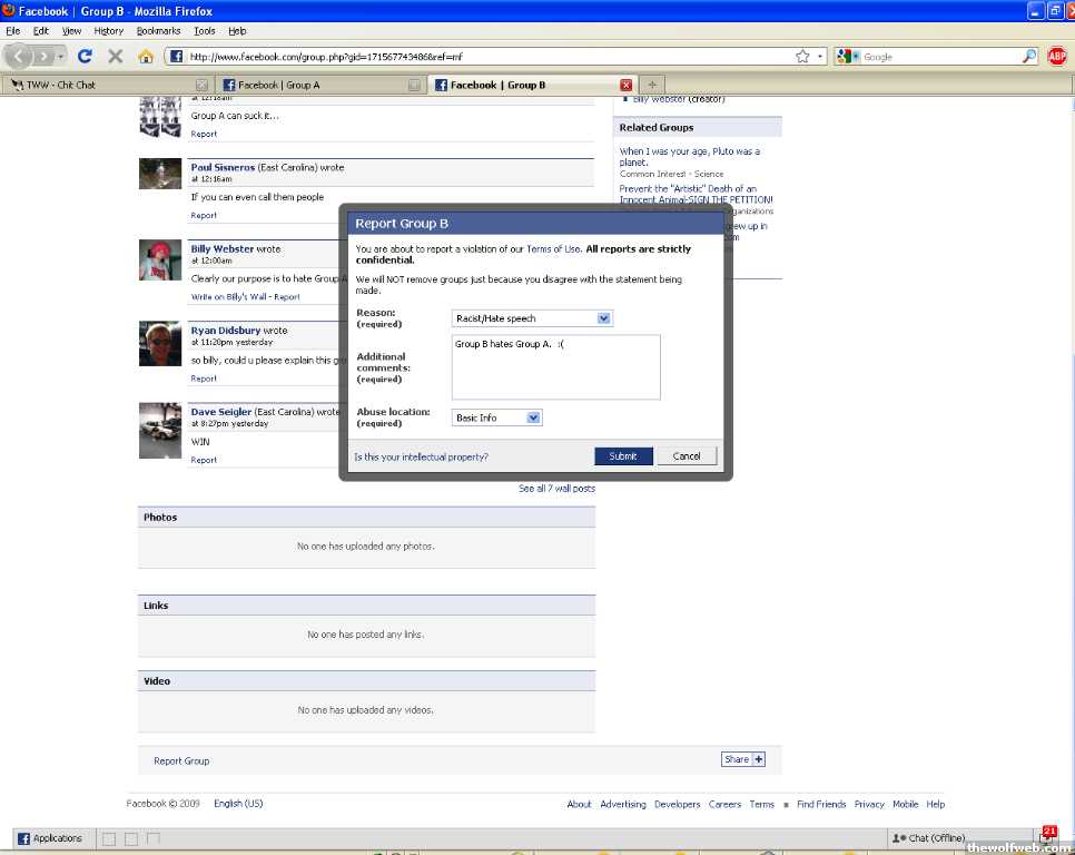 ITF (In This Facebook), Group B hates Group A