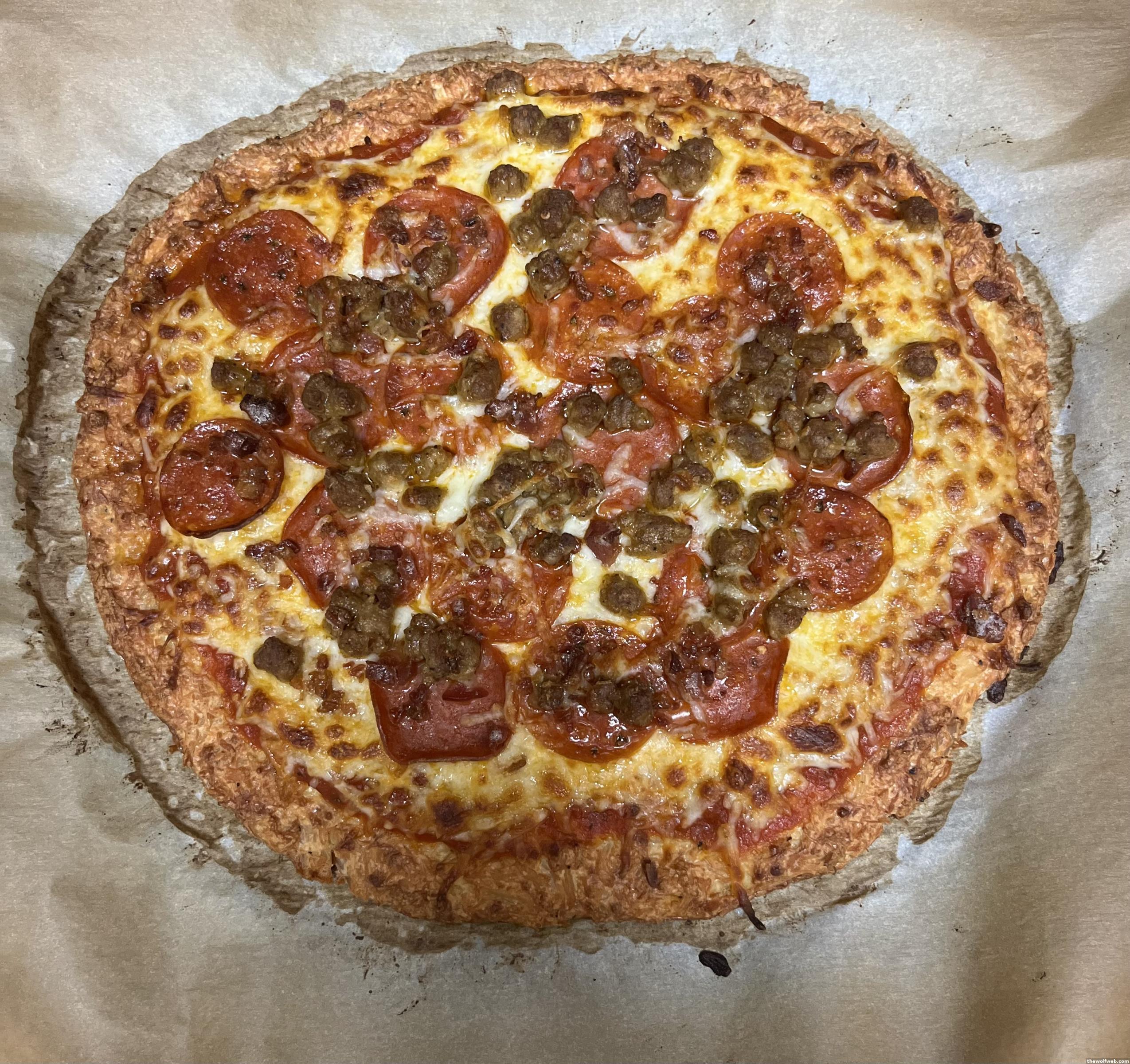 I'm finally trying the keto pizza, where you put parmesan, egg, canned chicken to make a crust. Hope it turns out good