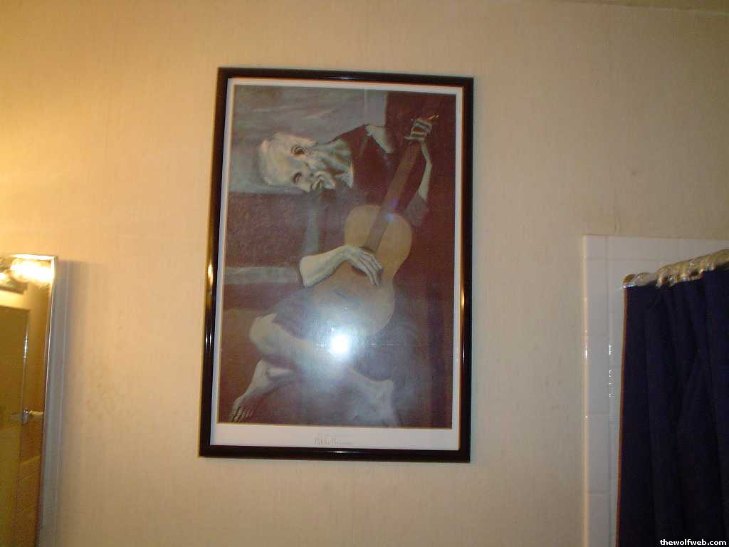 other than the picasso in my bathroom no other artwork was hung up yet...i had it all in a big pile on my dresser for the past like 2 months...so far i got the sunset, temples and tombs, and that old western looking one up
